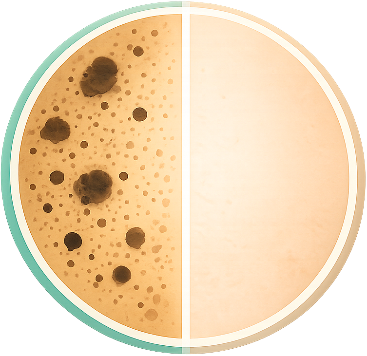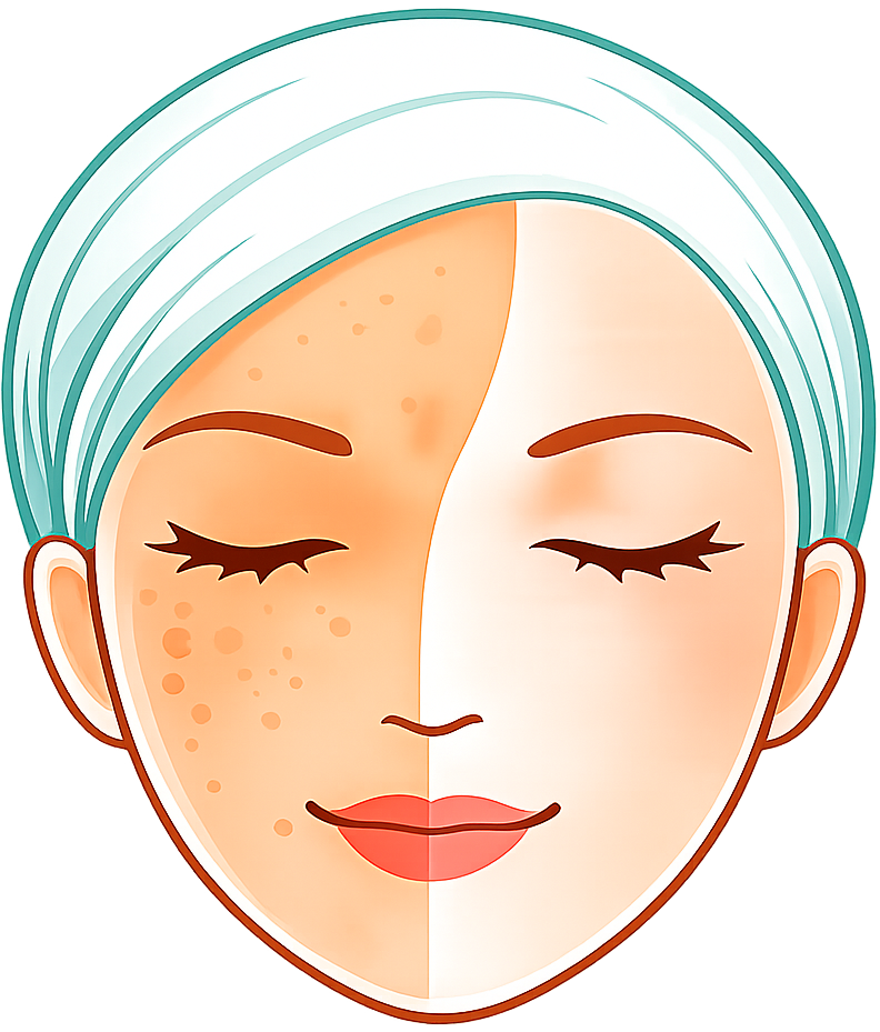 البقع الداكنة والتصبغات الناتجة عن الشمس أو الاحتكاك أو التغيرات الهرمونية،